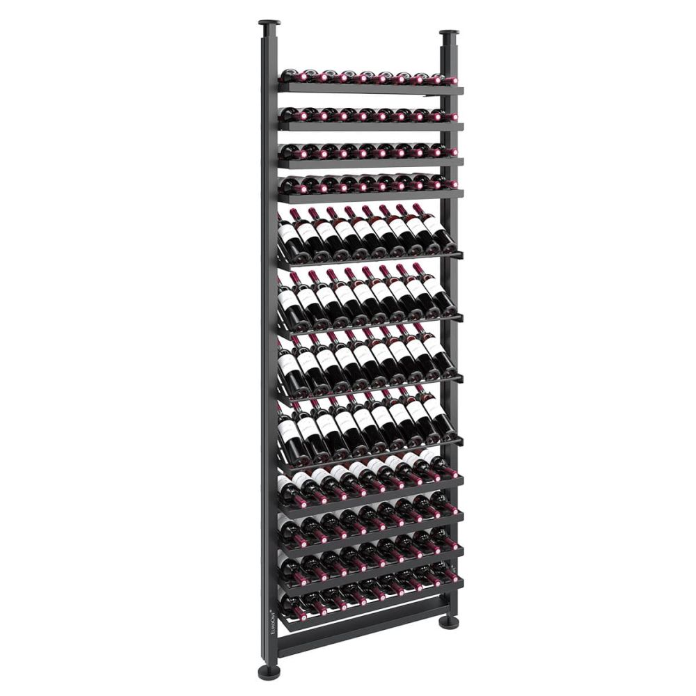 Für eine 2,85 m hohe Säule: Lagerversion mit 23 Ebenen= bis zu 207 Flaschen / Schrägpräsentationsversion mit 14 Ebenen= bis zu 126 Flaschen
