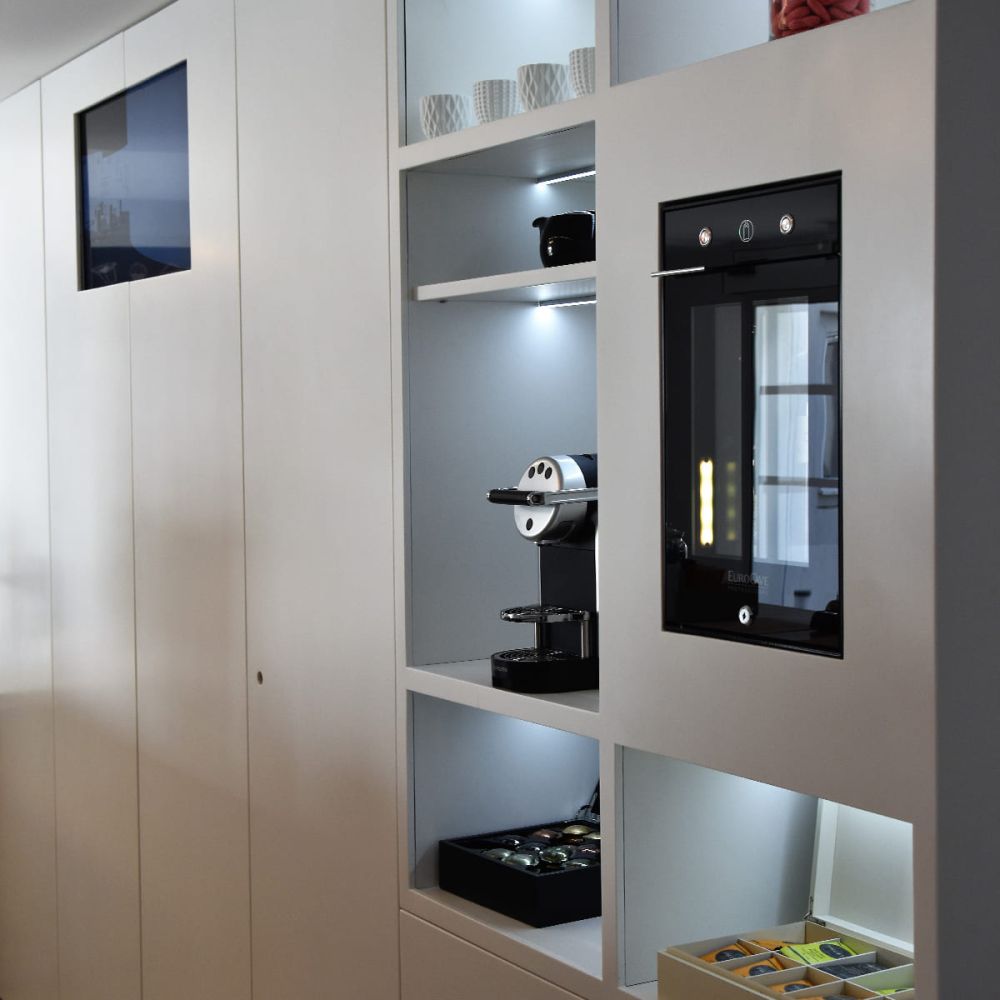 Die Wine Bar / Weinbar inszeniert Ihre Weinauswahl mit ihren eleganten Glastüren und ihrer mehrfarbigen LED-Beleuchtung.*